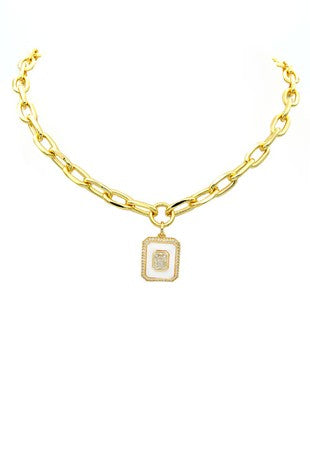 Gold square pendant necklace