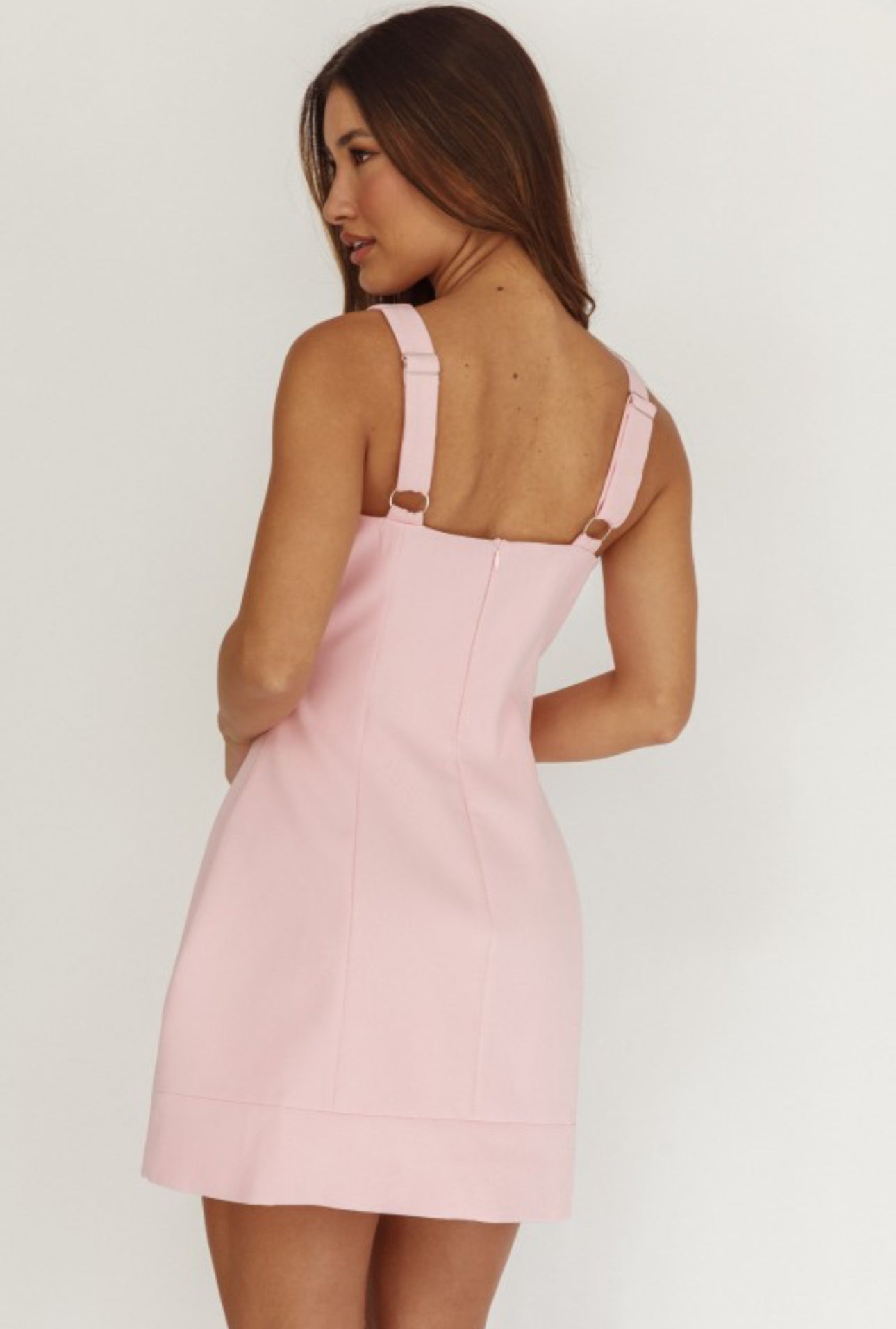 Turn heads in the Sweet Society Button Dress — a flirty, feminine mini designed in a soft blush hue. Featuring wide adjustable straps, a flattering V-neckline, and eye-catching gold statement buttons down the front, this dress brings charm and polish to any spring or summer occasion.